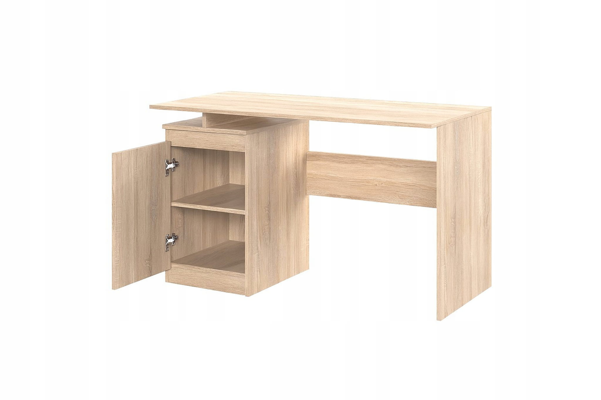 STERN T‑5 to minimalistyczne biurko, które łączy oszczędną formę z wysoką funkcjonalnością. Szeroki blat 120 cm pomieści laptop, monitor oraz materiały do pracy, a zamykana szafka pozwoli szybko ukryć dokumenty i akcesoria, by utrzymać idealny porządek. Wykonane w kolorze dąb sonoma, wprowadza do wnętrza ciepły, naturalny akcent, który świetnie komponuje się zarówno z nowoczesnymi, jak i klasycznymi aranżacjami.