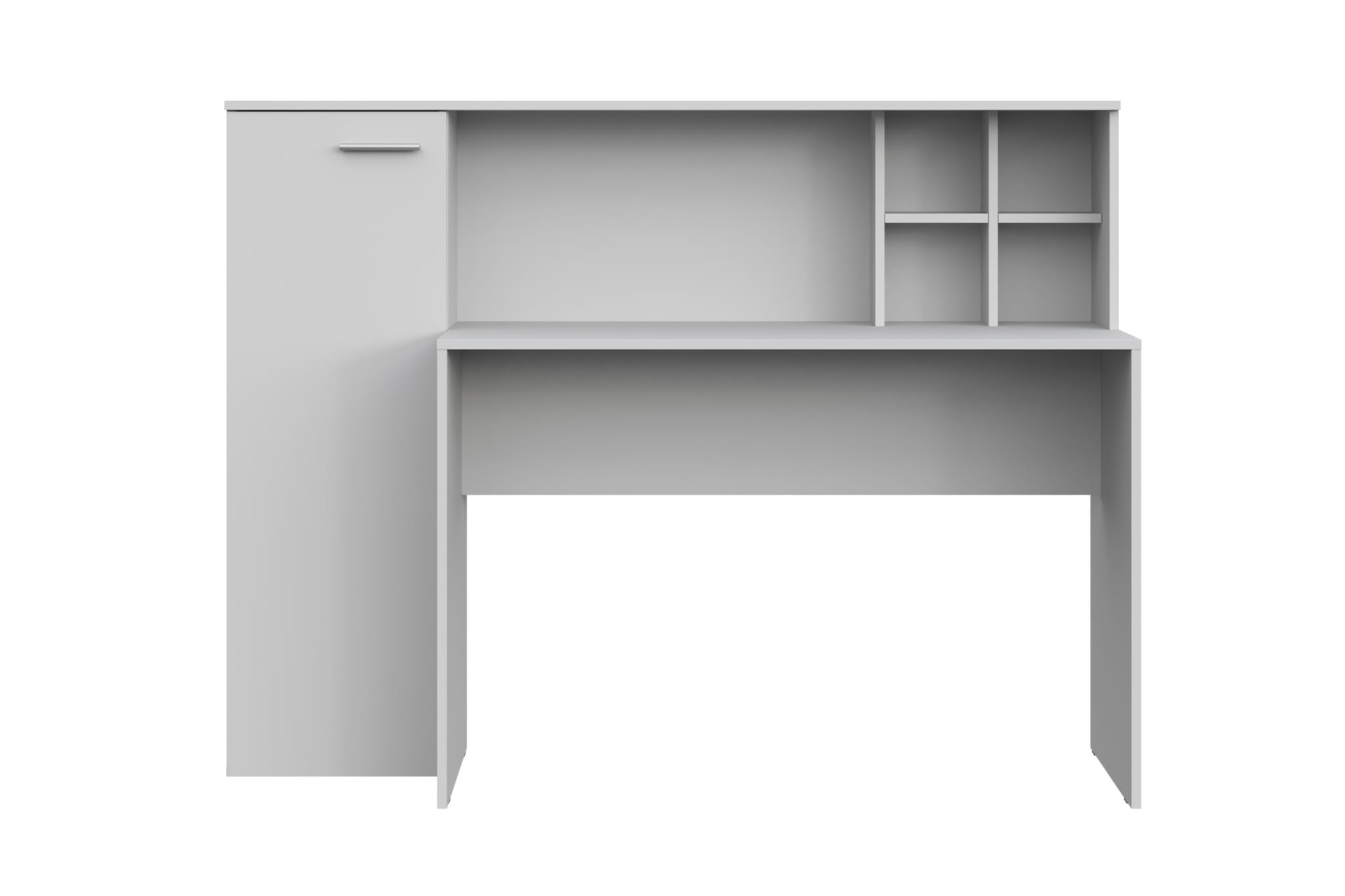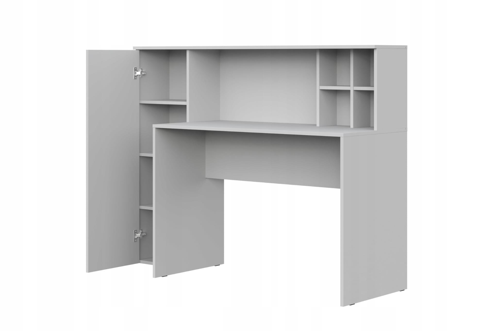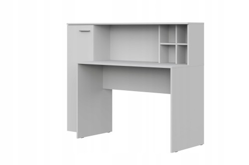 Biurko FUN to kompaktowe centrum pracy i nauki, w którym funkcjonalność spotyka się z minimalistycznym stylem. Biała kolorystyka rozjaśnia wnętrze i nadaje mu nowoczesny charakter. Po lewej stronie umieszczono pojemną, zamykaną szafkę na segregatory i akcesoria — wszystko masz pod ręką, lecz poza zasięgiem wzroku. Nad blatem znajduje się praktyczna nadstawka z szeroką półką oraz czterema kwadratowymi przegródkami, idealnymi na książki, zeszyty i dekoracje, które pomagają utrzymać porządek i lekki wygląd stanowiska.
