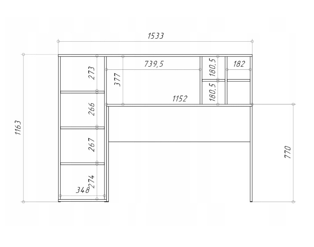 - Nadstawka z organizerem – szeroka półka na książki + 4 kwadratowe przegródki ułatwiające segregację drobiazgów.