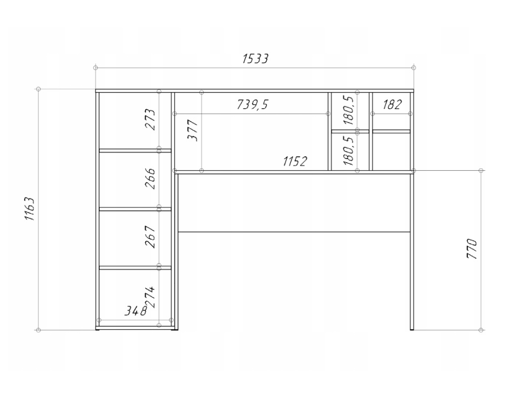 - Nadstawka z organizerem – szeroka półka na książki + 4 kwadratowe przegródki ułatwiające segregację drobiazgów.