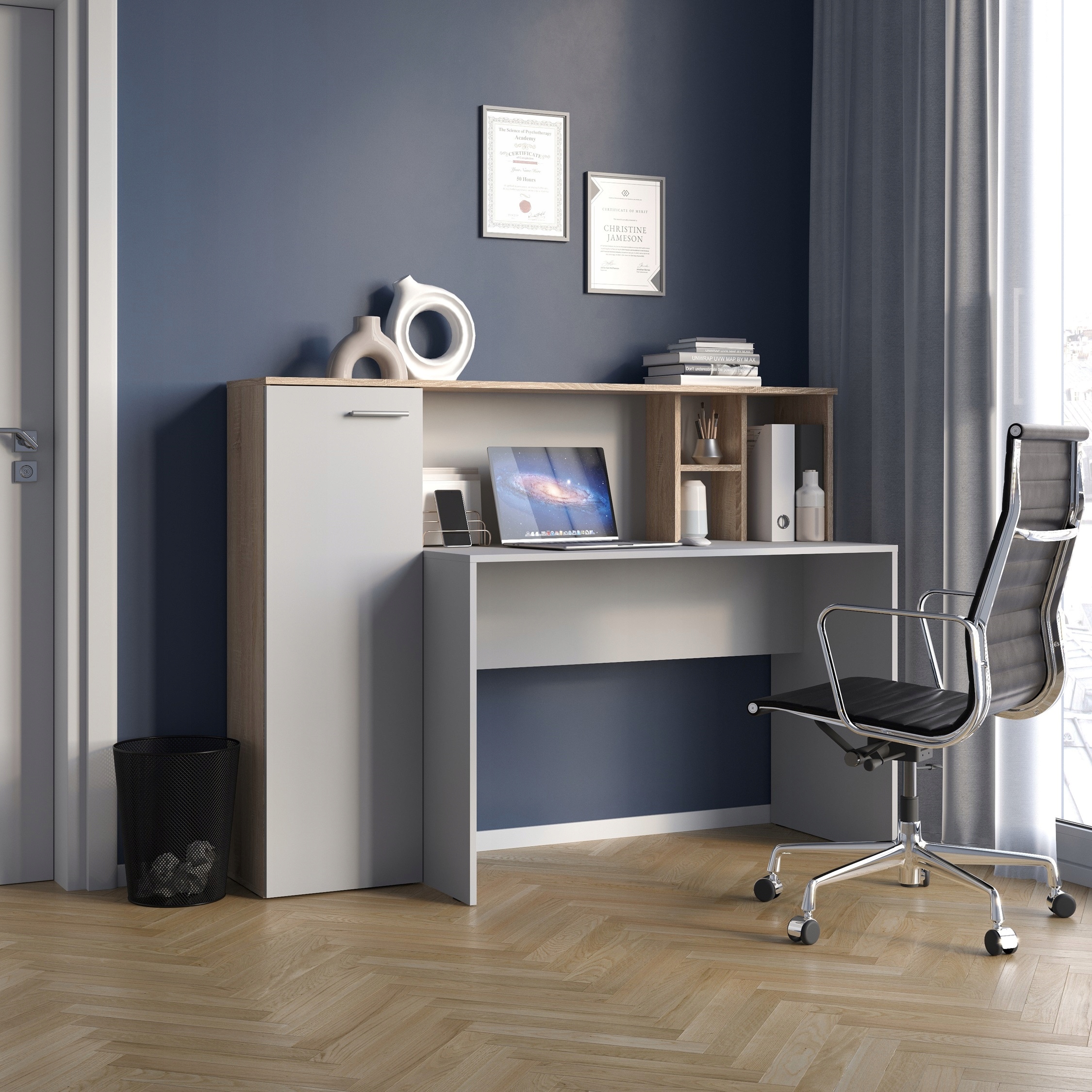Biurko 153 cm dąb sonoma biały z regałem do biura/pokoju dziecka FUN