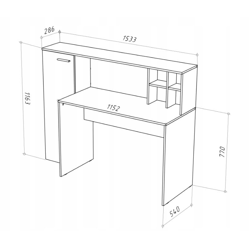 - Zamykana szafka boczna – ukrywa segregatory albo plecak, utrzymując czysty blat roboczy.