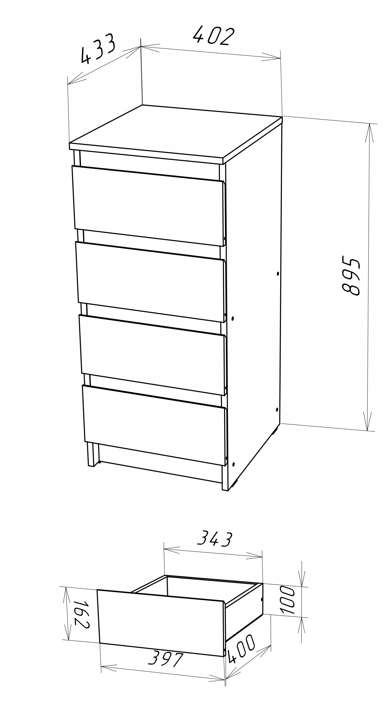 - Pojemne szuflady – cztery obszerne szuflady pomieszczą wiele rzeczy, pomagając w utrzymaniu porządku.