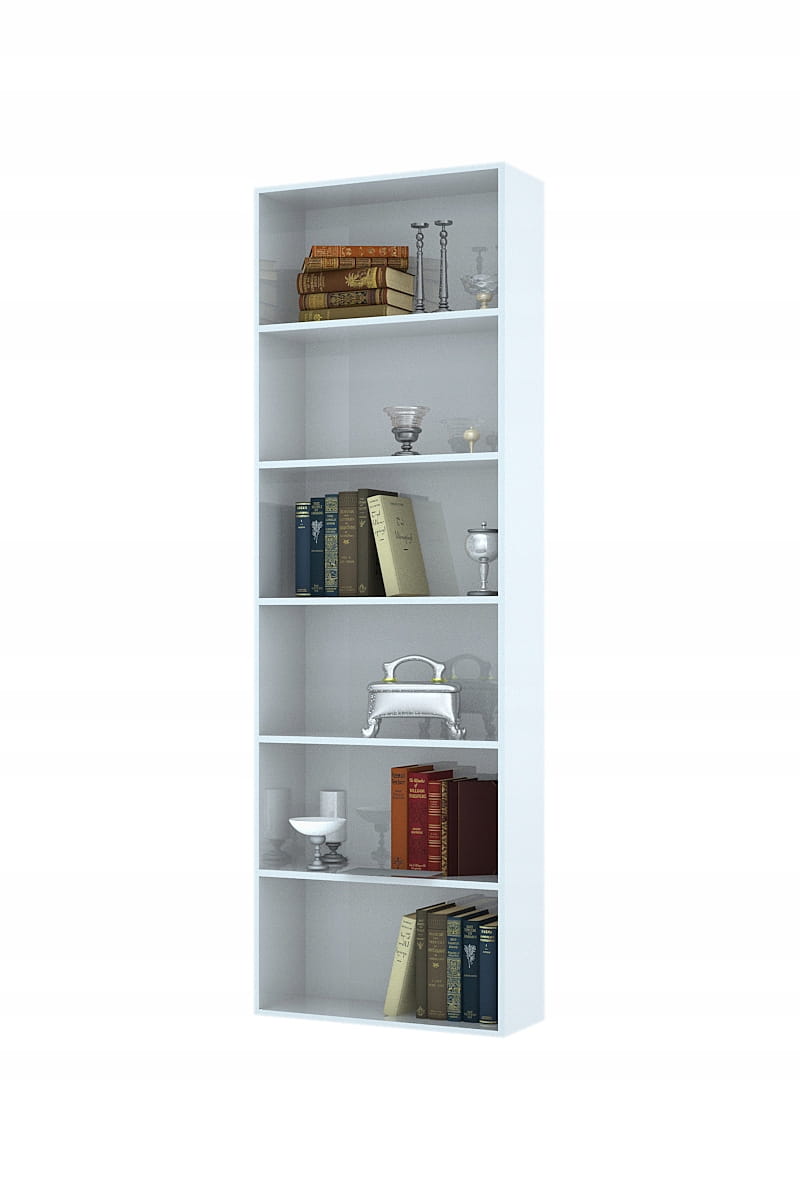 Nowoczesny, a zarazem ponadczasowy regał w kolorze białym to szybki sposób, by dodać każdemu wnętrzu lekkości i porządku. Smukła sylwetka i aż 6 przestronnych półek sprawiają, że mebel sprawdzi się w salonie, domowym biurze, pokoju dziecka czy garderobie.