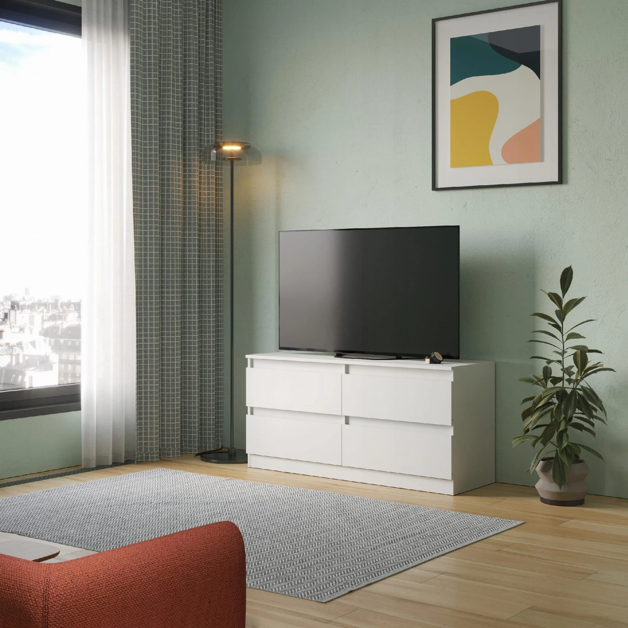 SZAFKA RTV 127 cm biała z szufladami do salonu STERN TV-4JA
