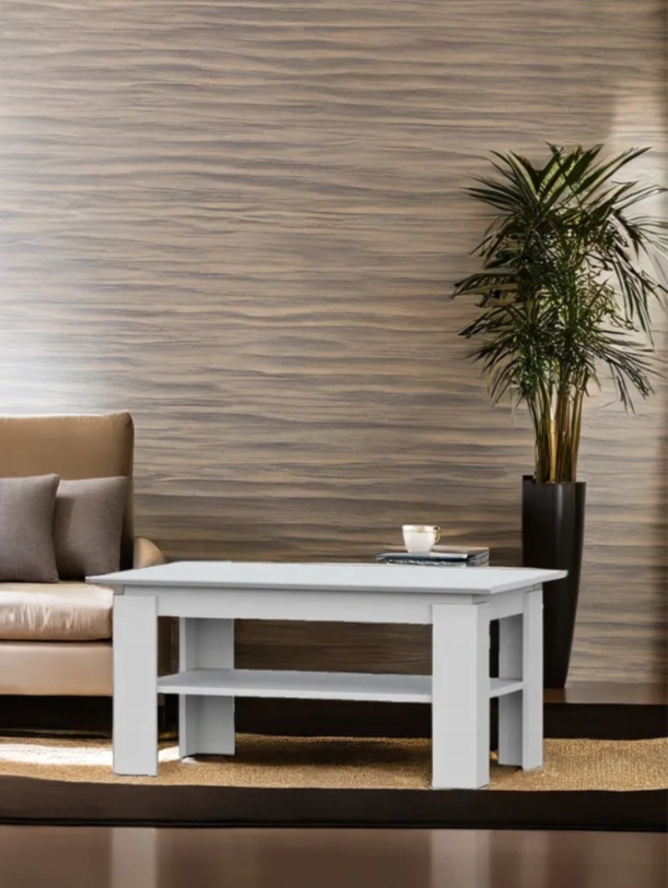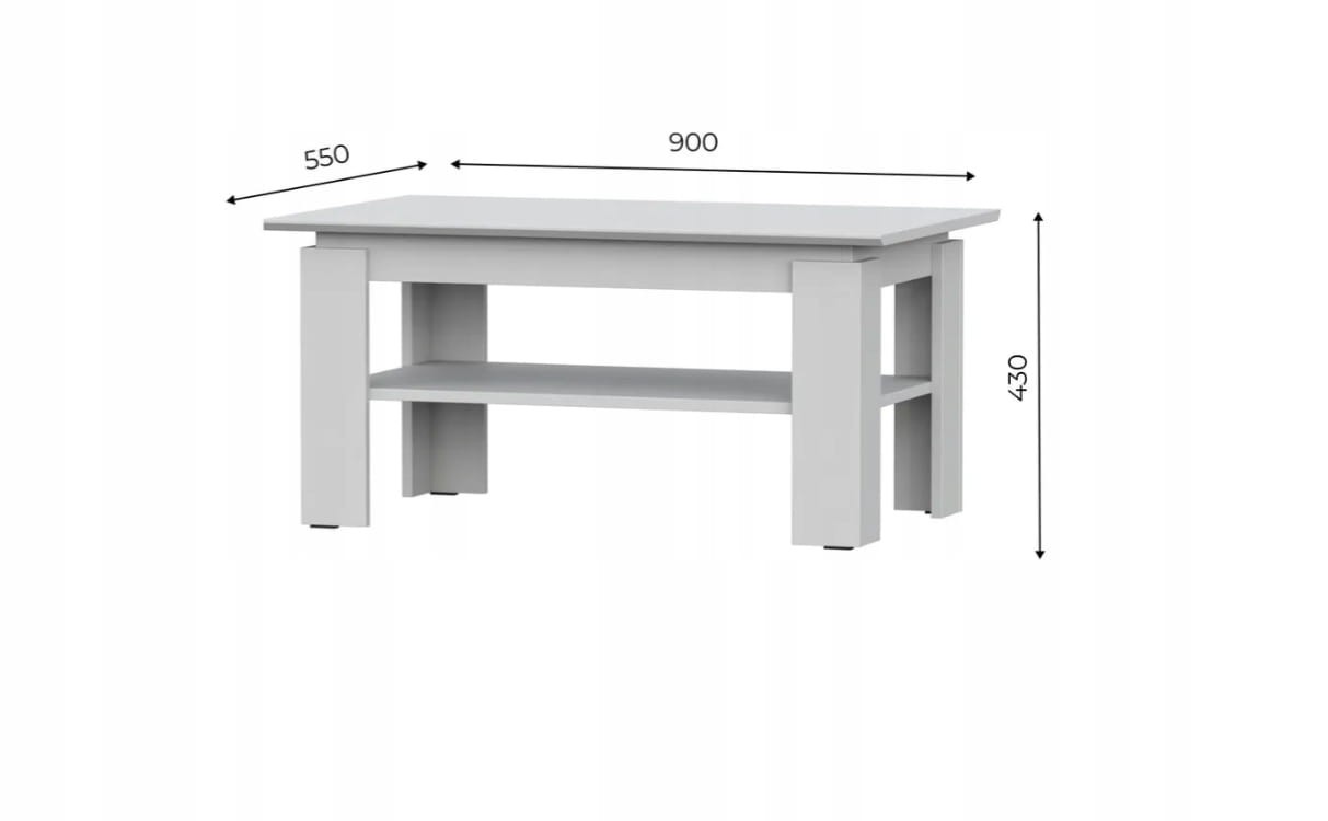 - Sprytna dwu‑poziomowa funkcjonalność – elegancki blat na kawę i dekoracje, a dyskretna półka pod spodem porządkuje piloty, książki i magazyny.