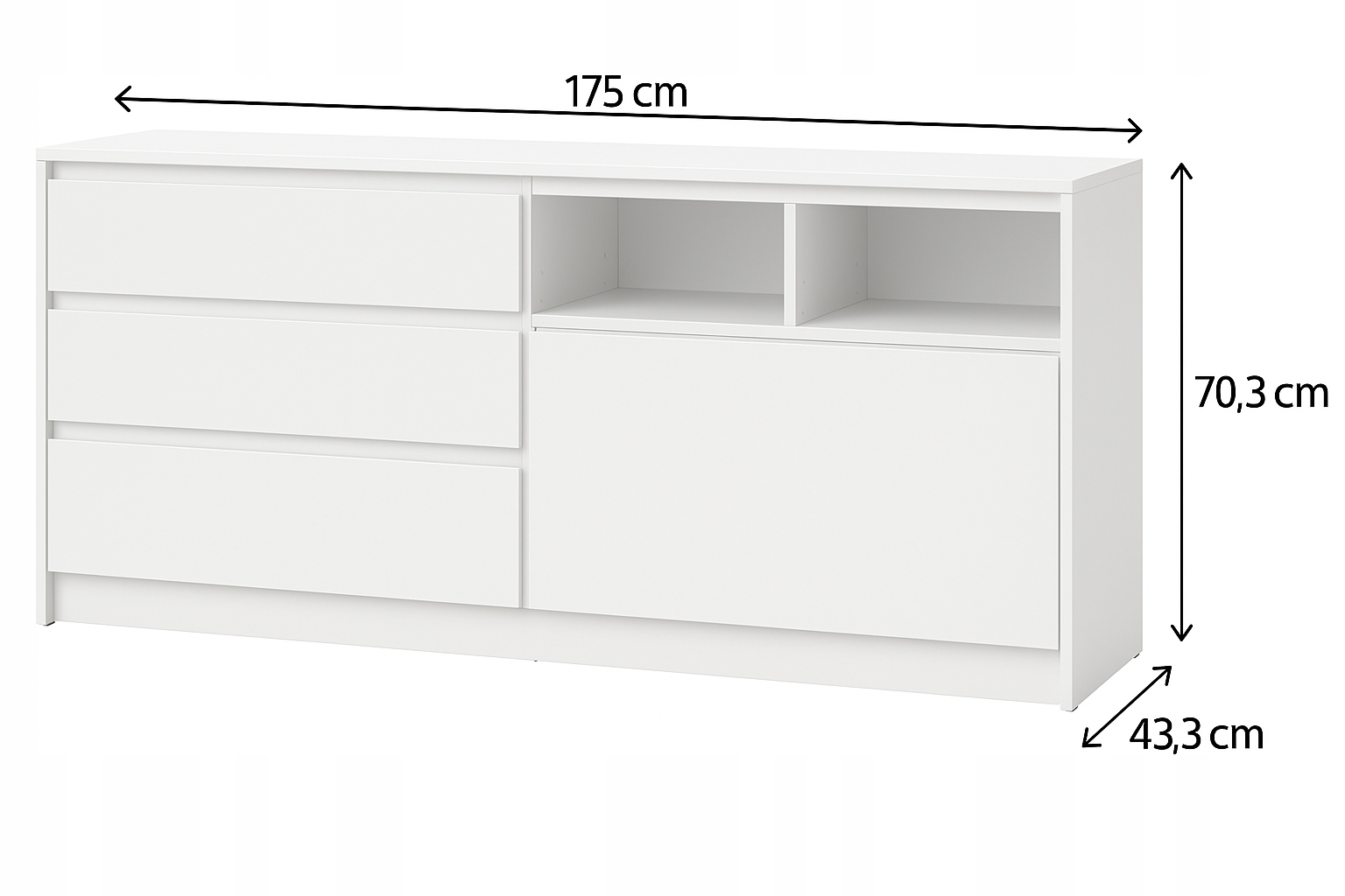 Szafka RTV 175 cm biała z szufladami do salonu STERN TV-175