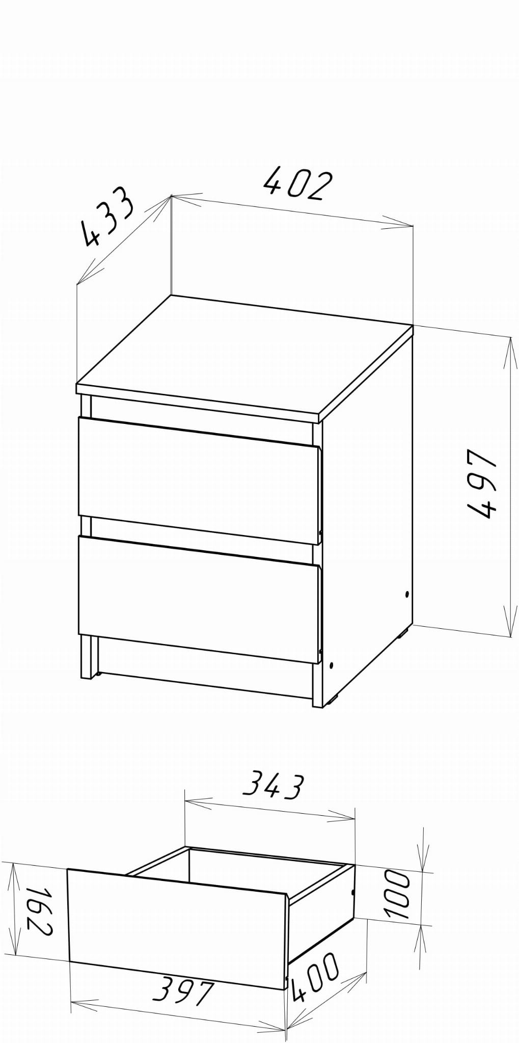 - Głębokość mebla 43.3