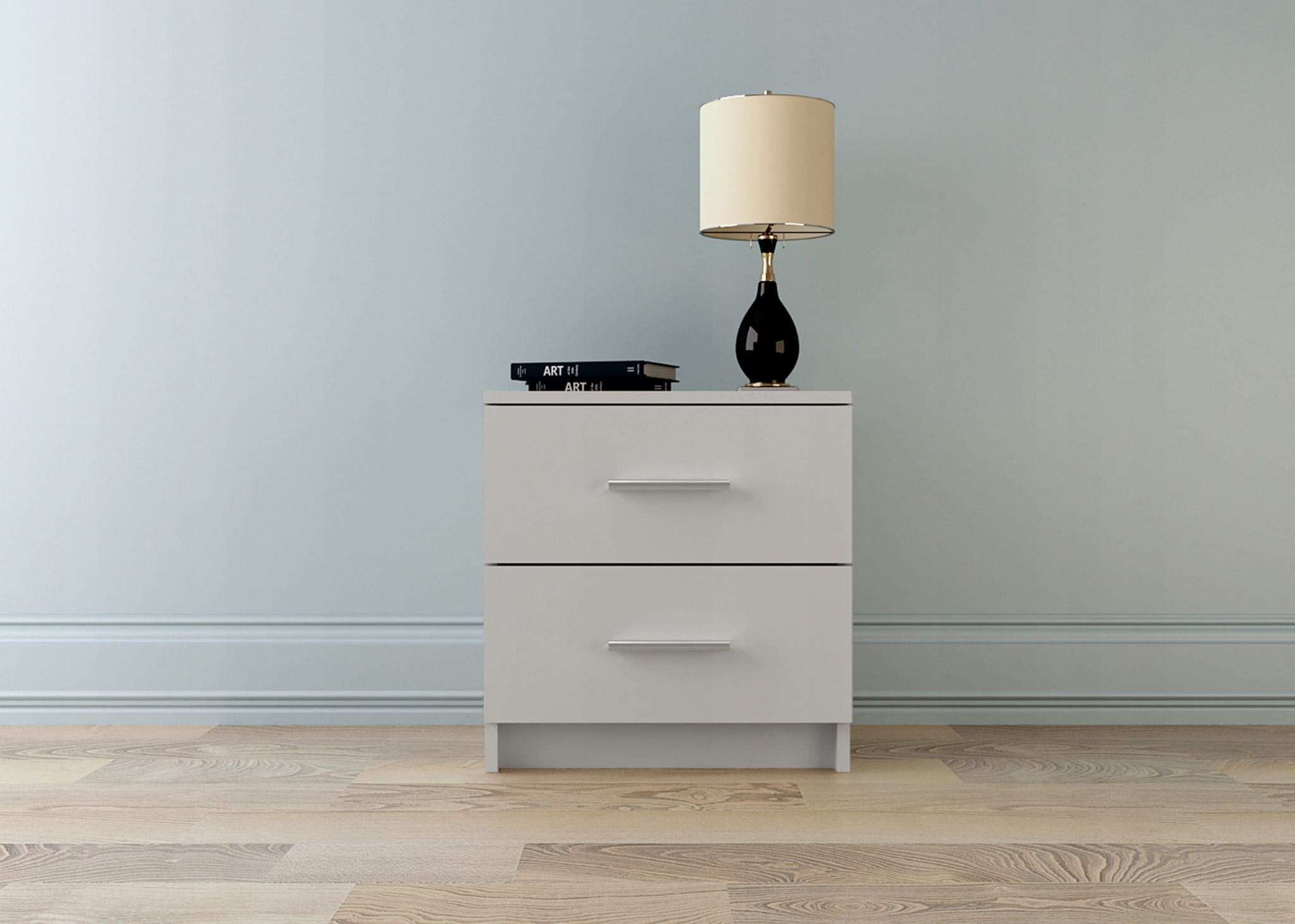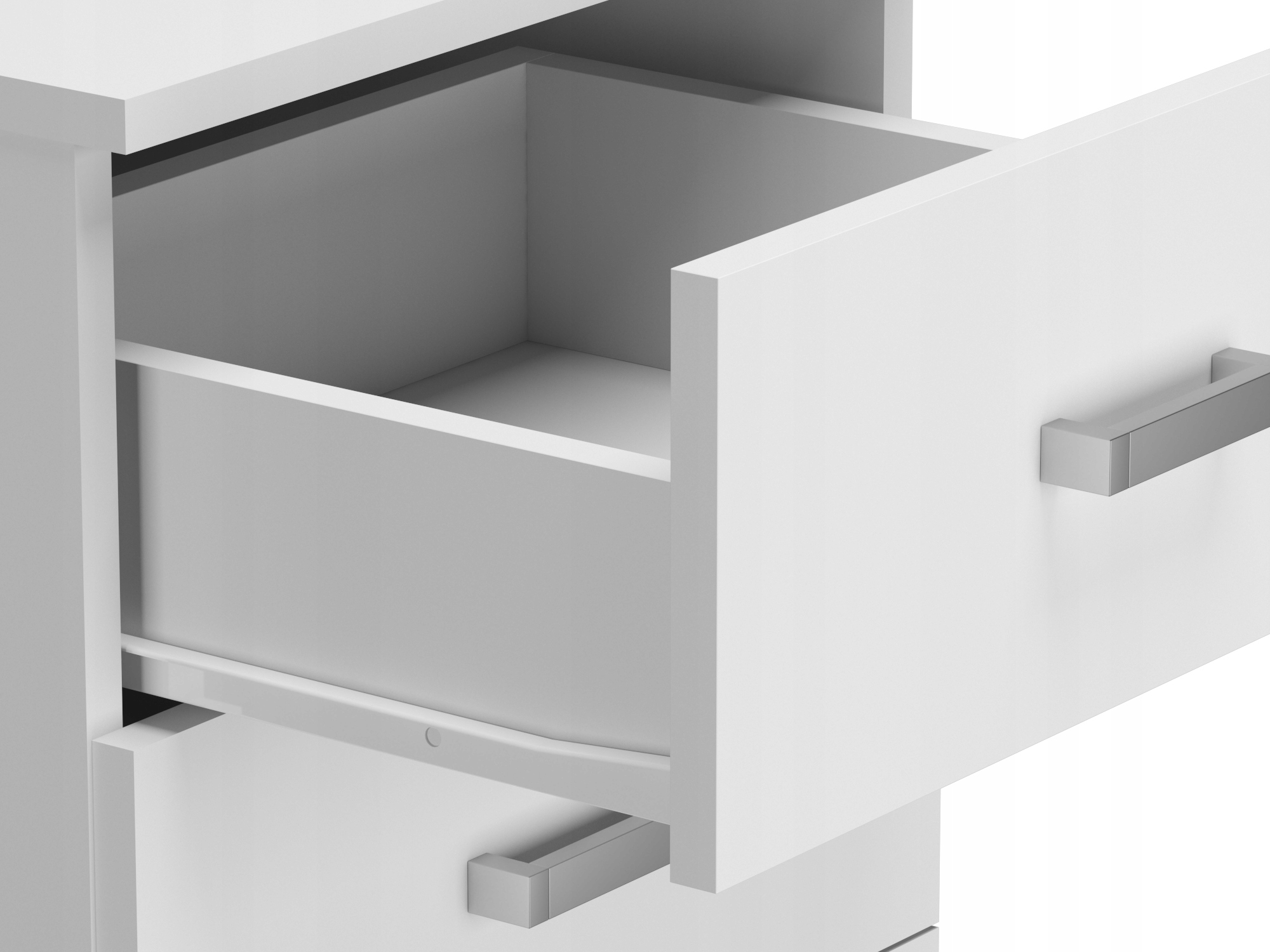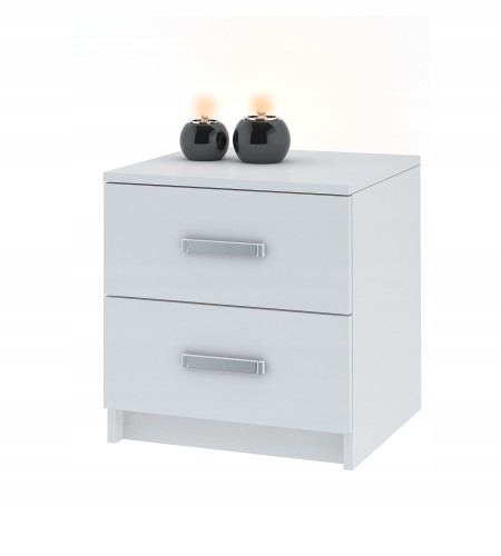 Zgrabna szafka nocna o kompaktowych wymiarach, idealna do sypialni, pokoju młodzieżowego. Dwie równe szuflady pomieszczą bieliznę lub drobiazgi, a blat posłuży na lampkę, książkę czy telefon. Nowoczesny kolor biały w połączeniu z klasycznymi uchwytami dodaje wnętrzu przytulności i łatwo łączy się z różnymi stylami aranżacji.