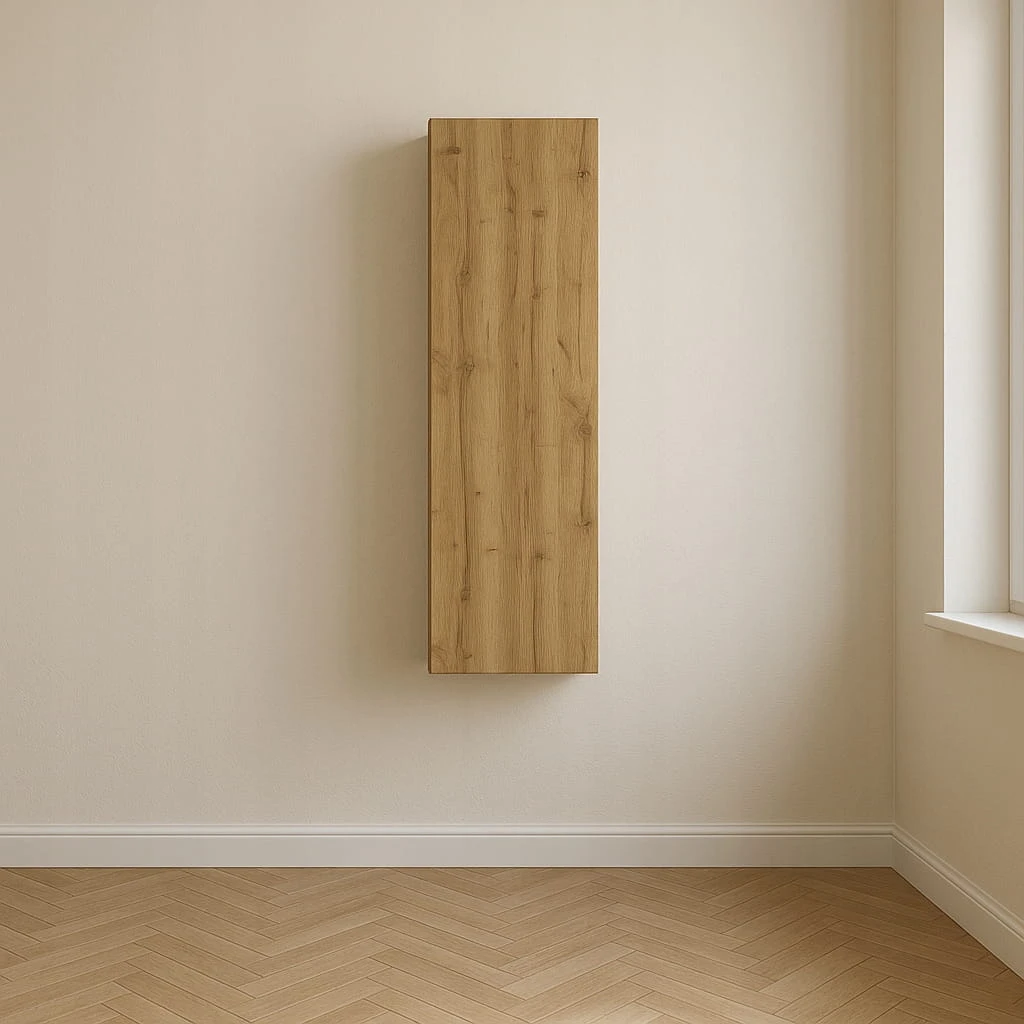 Smukła wisząca szafka–słupek w kolorze dębu to sprytny sposób na dodatkowe miejsce w salonie, pokoju młodzieżowym i biurze. Gładki, bezuchwytowy front i ciepły rysunek drewna wprowadzają porządek oraz przytulny akcent, który pasuje do aranżacji skandynawskich, nowoczesnych i loftowych. Wewnątrz czekają praktyczne półki na książki, segregatory, akcesoria czy gadżety – wszystko schowane, ale zawsze pod ręką. Zawieś ją na dowolnej wysokości i natychmiast zyskaj elegancki porządek – dodaj do koszyka i wykorzystaj każdy centymetr ściany!